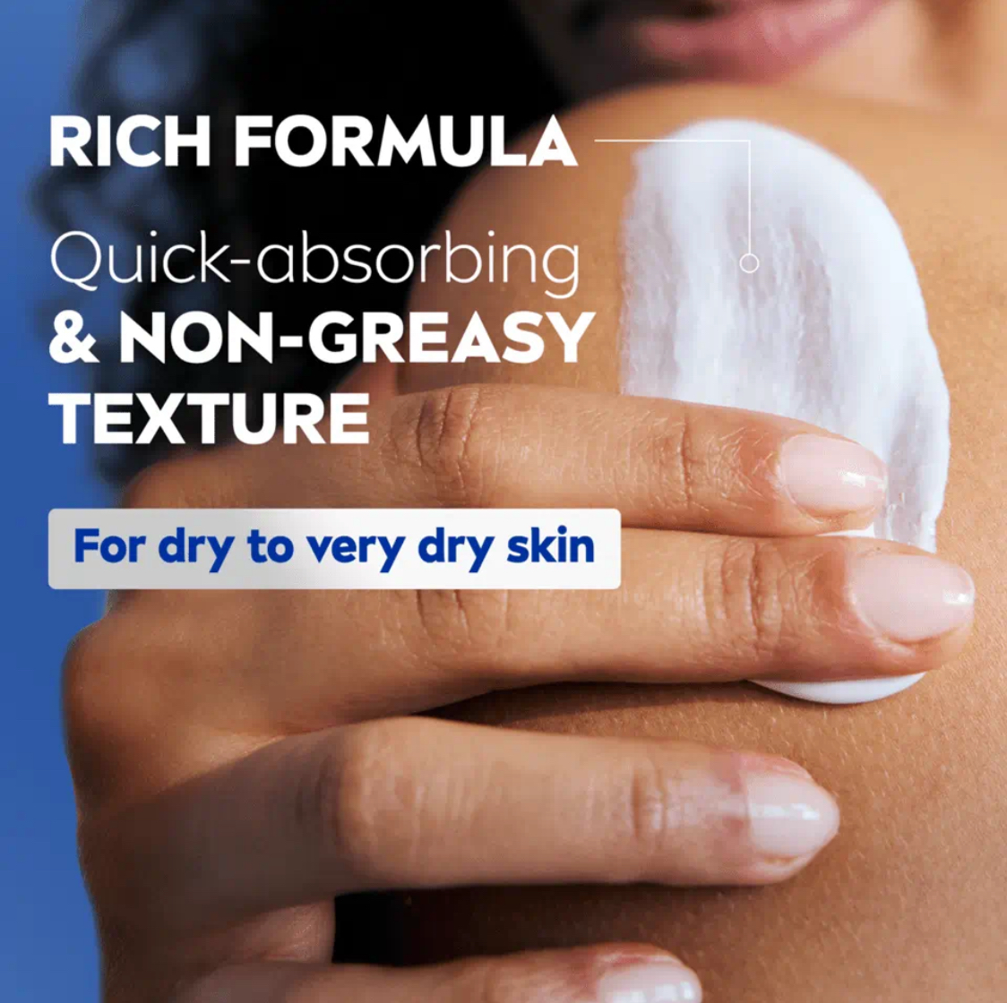 Transform your dry skin with NIVEA Rich Nourishing body lotion, with the new and improved formula that provides clinically proven 72h moisture. For healthy looking skin with every use. Nourishing formula enriched with Pure Hyaluron, Almond Oil and Deep Nourish Serum, this body lotion will deliver intensive care and is perfect for dry to very dry skin. Non greasy and quick absorbing. Some areas of skin dry out quicker than others. That's why it's important to give it extra nourishment all year round. NIVEA cares for your skin. New improved bottle with reduced plastic vs. before / 50% recycled plastic bottle (without pump). Present in over 160 countries, NIVEA is the world's no.1 skin care brand* with more than 100 years of experience. A market leader in the global skincare industry, we use our expertise to carefully select the highest quality ingredients and provide skin compatible, dermatologically approved products to suit various skin types and skin needs.