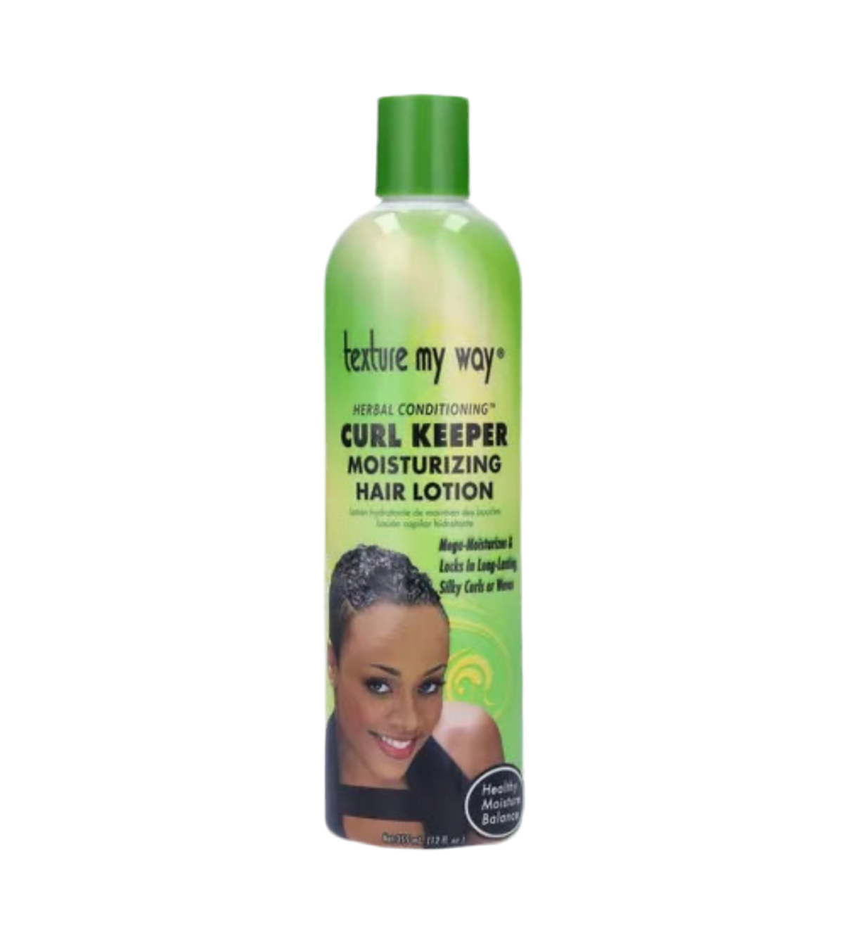 Whether you’re sporting sassy waves, full curls or just softened natural texture, Texture My Way Curl Keeper Moisturizing Hair Lotion quenches dry hair with a healthy dose of well-needed moisture. Your style immediately snaps back to life!