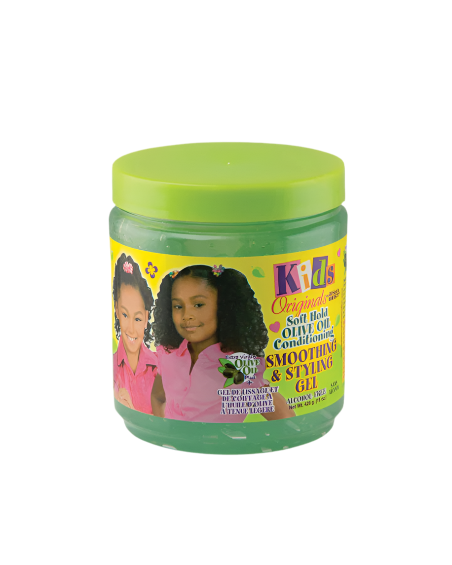 Say goodbye to old-fashioned, tacky gels that leave flaky residue on your daughter's hair and scalp. Finally, there's a conditioning styling gel that contains NO ALCOHOL-which means there is no crunchy, stiff feel that causes hair to break. Fortified with Extra Virgin Olive Oil, it strengthens while giving superior hold and a healthy-looking shine. Kids Originals by Africa's Best Soft Hold Olive Oil Smoothing & Styling Gel also contains Natural Conditioning to add moisture and protein to hair, while you create beautiful, long-lasting styles. Use it to hold ponytails and twists and to help create wet curls, candy curls, finger waves, or any smooth-looking style. The anti-frizz formula lays hair down without weighing it down.
